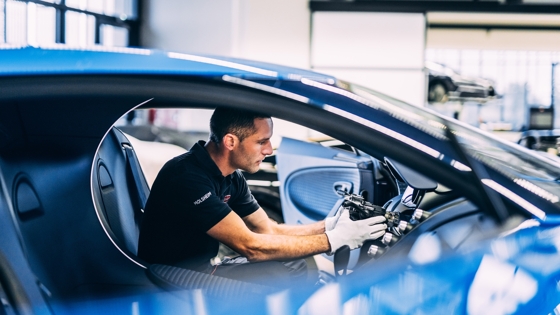 Более четырёх дней, чтобы выполнить качественное тиснение подголовника, раскроить кожу по размеру и затем всё собрать, уходит на сборку сидений и ещё один день на осмотр готового кресла и оценку качества работы. Немало времени уходит на декоративную клетчатую прострочку обивки на сиденьях, крыше, дверных панелях, центральной консоли и напольных ковриках.
