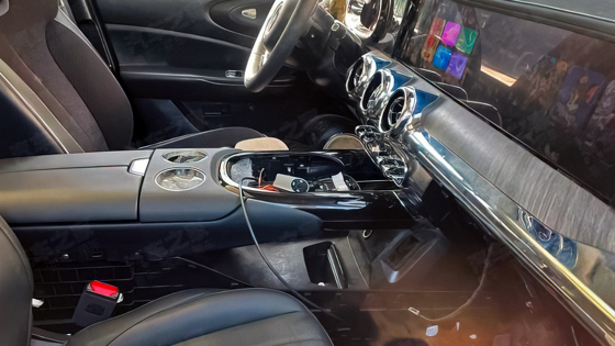 Если внешне в «Сбывшейся мечте» практически ничто не выдает современный автомобиль, то салон вполне соответствует своему времени: имеется и цифровая «приборка», и два огромных сенсорных дисплея под единым стеклом, которые занимает большую часть передней панели.