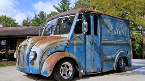 Кузов Divco 374 выполнен в стиле рэт-родов -- со следами многолетней ржавчины и множеством дефектов. Энтузиасты сохранили фирменную ливрею молочной компании, изготовили для автомобиля новую раму, установили на фургон новую заднюю подвеску, а переднюю позаимствовали у пикапа Chevrolet 95.