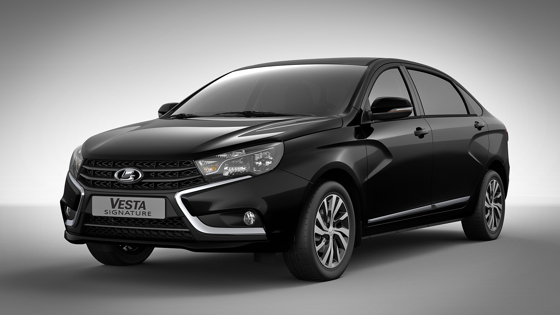 Signature-версия отличалась от стандартного седана растянутой на 250 миллиметров колесной базой — это позволило увеличить пространство для ног пассажиров на втором ряду на внушительные 20 сантиметров. Такой Весте был положен кожаный салон, оригинальные текстильные ковры с вышивкой и окантовки воздуховодов другого дизайна. Кроме того, у такого автомобиля была существенно улучшена шумоизоляция.