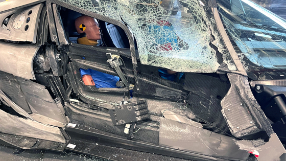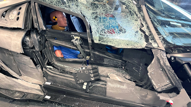 В ходе испытания в неподвижный суперкар въехала тележка на скорости 51 километр в час. Подобный краш-тест имитирует боковое столкновение с автомобилем. В отличие от лобового столкновения, когда основная ударная сила приходится на моторный отсек, боковой удар считается более опасным с точки зрения сохранности пассажиров. В момент таких аварий во всех машинах срабатывают подушки безопасности, которые призваны минимизировать травмы.