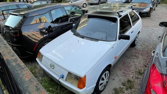 В Киеве сфотографировали электрическую «Таврию» с солнечными батареями