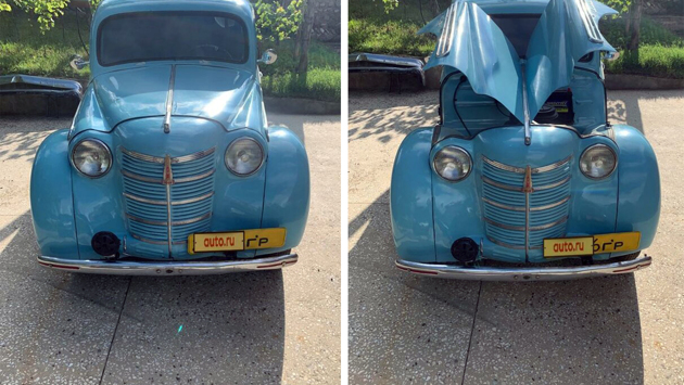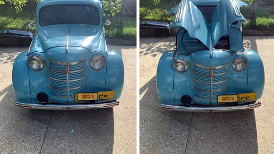 Автор объявления указывает, что такие пикапы построены на базе серийного седана 400-420 и выпущены ограниченной серией в середине 50-х годов прошлого века. Этот автомобиль создавался для обслуживания аэродромов: у него имеется погрузочная платформа без откидного борта. Продавец отмечает, что машина была отреставрирована.