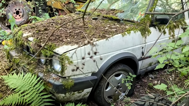 Месторасположение автомобильной свалки автор ролика не раскрыл. Судя по кадрам, кладбище находится в глухом лесу. Территория стоянки заросла травой и кустами, среди которых оставили «умирать» множество европейских и британских машин, а также огромное количество мотоциклов, минивэнов и тракторов. Помимо ржавых Land Rover и фургонов 1990-х годов, автор обнаружил Volkswagen Golf GTI второго поколения. Некогда популярный хот-хэтч вряд ли удастся спасти. У автомобиля, покрытого мхом, серьезно помят кузов и разбиты стекла.