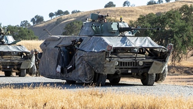 В США провели учения Национальной гвардии на базе Кэмп-Робертс в Калифорнии. В ходе маневров военные использовали надувные макеты российских бронетранспортеров БТР-90 на шасси автомобилей Humvee, пишет Defence Blog.