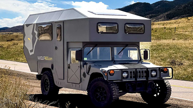 Компания Wolf Rigs из Колорадо превратила внедорожник Hummer H1 в полноценный дом на колесах Patton с прочным каркасом. Такой кемпер идеально подойдет для длительного путешествия даже по самым диким дорогам. Основной каркас и корпус автомобиля сделаны из алюминия, благодаря чему конструкция получилась очень прочной. В кемпере оборудовали несколько отсеков для хранения вещей и оборудования. Самый большой находится в задней части: там есть место для запасной шины, инструментов и выдвижной лестницы. Несмотря на кажущийся маленький размер корпуса, внутри компании удалось обустроить полноценный дом со всем необходимым для длительных путешествий. В кемпере уместили гостиную и столовую. Мини-кухня оборудована плитой с двумя конфорками, раковиной и холодильником. Всю необходимую электроэнергию для техники вырабатывают солнечные панели. $(function() { SyntaxHighlighter.all(); }); $(window).on('load', function(){ $('.flexslider').flexslider({ animation: "slide", start: function(slider) { $('body').removeClass('loading'); } }); }); Ванную комнату сделали в задней части кемпера. Там авторы установили душевую кабину и скрытый туалет, разработанный по запатентованной системе компании. Спальню с кроватью queen-size расположили над водительским сиденьем. (function(w, d, n, s, t) { w[n] = w[n] || []; w[n].push(function() { Ya.Context.AdvManager.render({ blockId: "R-A-219559-6", renderTo: "yandex_rtb_R-A-219559-6", async: true }); }); t = d.getElementsByTagName("script")[0]; s = d.createElement("script"); s.type = "text/javascript"; s.src = "//an.yandex.ru/system/context.js"; s.async = true; t.parentNode.insertBefore(s, t); })(this, this.document, "yandexContextAsyncCallbacks"); Вам также будет интересно узнать: Nissan Navara SL Warrior дебютирует в Австралии Chevrolet представил новое поколение пикапа Colorado Модели LADA Largus и Granta Drive Active подорожали в цене