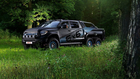 Модифицированный пикап разработали инженеры российского тюнинг-центра «4х4 Tundra». Автомобилю нарастили раму, добавив еще одну ведущую ось, добавили лифт-комплект подвески, кованые колесные диски с 38-дюймовыми внедорожными покрышками, а также пневмоподвеску, управлять которой можно из кабины машины. При этом размеры грузовой платформы увеличили практически до трех метров.