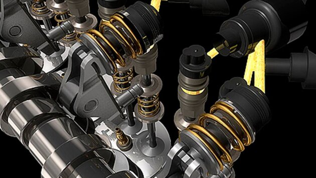 Двигательная система не имеет в своей конструкции распределительного вала, управляющего клапанами. Корпус воздушных форсунок представлен в формате электронно-гидравлической версии. Система работает для каждого цилиндра в индивидуальном порядке. Электроника определяет, на какое время открыть впускные клапаны, и с какой скоростью их закрыть. Таким образом осуществляется гибкий контроль над воздушными потоками.