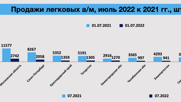 В обзоре рынка также указано, что с января по июль 2022 года в России было продано 386 558 новых машин против 914 458 автомобилей за аналогичный период 2021 года. Лидерами июльского рейтинга продаж стали автомобили марки Lada — 10 467 единиц. На втором и третьем местах — Kia и Hyundai. Замыкают пятерку рейтинга два китайских бренда — Chery и Geely.