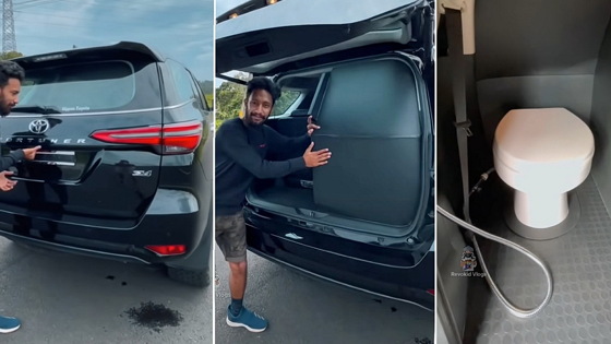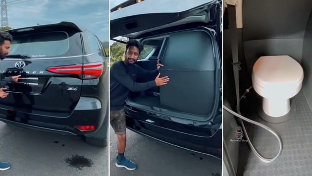 Индийский автомобильный журналист Сарат Саджи показал на видео оригинально модернизированный рамный внедорожник Toyota Fortuner. В багажнике автомобиля оборудовали отдельную туалетную кабинку, да так, что снаружи переделка совсем не заметна. Доступ в уборную такой же, как на третий ряд сидений: кресло второго ряда откидывается, освобождая проход, однако попасть к унитазу, не открывая боковую дверь, окажется затруднительно.