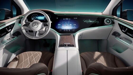 Mercedes-Benz раскрыл дату презентации новинки: электрокроссовер покажут через два месяца, 16 октября. Пока что компания опубликовала несколько официальных снимков интерьера EQE SUV. Клиентам предложат пять различных цветовых сочетаний для отделки салона: используются тёплые и холодные оттенки. В компании оформление назвали «гибридным», так как в нём используются элементы декора из традиционных материалов (дерево), а также более современных (алюминий).
