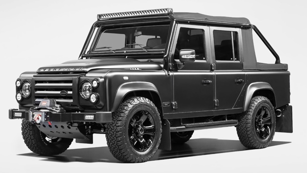 Кузов внедорожника выкрашен в черный колер Obsidian Satin Black. Колеса — 18-дюймовые легкосплавные Apollo, обутые в шины BF Goodrich. Передняя и задняя оптика собраны на светодиодах. Также на машине стоят зеркала с электроприводом и алюминиевые дверные ручки; решетка радиатора оформлена в стиле Defender SVX. Лебедка — Warn VR Evo с тяговым усилием 4,5 тонны.
