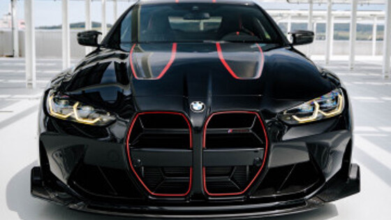 В новой фотогалерее BMW M4 CSL окрашен в цвет Black Sapphire Metallic, но он сохраняет те же серые и красные полосы на капоте, как и любой другой CSL. Поэтому он имеет очень агрессивный, угрожающий вид. Красные акценты есть на капоте, на боковых юбках, на крыше и даже на значках. Поскольку у этой машины все черные колеса, эти красные акценты — единственные вспышки цвета.