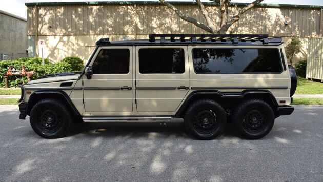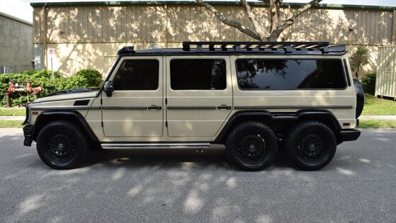 Cars & Bids в настоящее время предлагает этот уникальный трехосный внедорожник Mercedes-Benz G550 для продажи в Соединенных Штатах. Торги по-прежнему находятся на относительно низком уровне в 80 000 долларов, но могут оживиться до закрытия аукциона через три дня. Гигантский внедорожник имеет только два ряда сидений внутри, но те, кто на задних сиденьях, наслаждаются тем, что, вероятно, равносильно бесконечному пространству для ног. Остальное добавленное пространство уходит на багажник, который также больше похож на кузов грузовика по размеру и практичности. Кстати, о грузовиках: в свое время Mercedes действительно выпускал G-класс 6×6, но это была строго ограниченная специальная серия пикапа. Напротив, этот был преобразован из обычного внедорожника G-класса, растянув его кузов и шасси и установив ось третьего колеса. Детали Brabus со всех сторон помогают создать угрожающий внешний вид, но внутренности остаются стандартными. Таким образом, довольно устаревший G550 оснащен 4,0-литровым двигателем V8, усиленным до 422 л.с.. Крутящий момент идет на две стандартные оси, а третья остается отсоединенной и просто тащит за собой, как мертвый груз. С пробегом около 1000 км автомобиль почти не использовался.