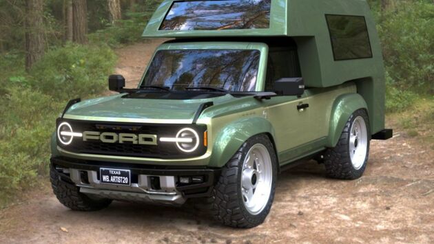 Стало известно о том, что на просторах интернета появились изображения независимого художника Оскара Варгаса, на которых показан Ford Bronco Camper. Переоборудование кемперов становится все более популярным в постпандемическом мире, поэтому автор решил сделать жилой отсек в Ford Bronco. Художник не только превратил внедорожник в мини-кемпер, но и пошел дальше, добавив широкий бодикит и регулируемую по высоте пневмоподвеску. Судя по колесной базе, модель, представленная только в цифровом виде, выглядит так, будто она основана на пятидверном Bronco. Однако он был переделан в двухдверный пикап, прежде чем сзади был добавлен кемпинговый «ящик». Задняя часть имеет вид ретро-вэна и обычную дверь, напоминающую бронированный грузовик для перевозки денег. Хотя общий результат выглядит круто, размер бокса может оказаться слишком маленьким, чтобы вместить полноценный кемпер (кровать, кухню и ванную).