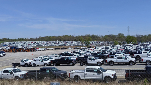 Первые фотографии неукомплектованных Ford появись в Сети еще зимой – тогда на площадке возле завода Ford в Мичигане засняли несколько десятков Bronco. Весной на снимки попали огромные стоянки с пикапами F-Series Super Duty, ожидающими дефицитные электронные компоненты у предприятия в Кентукки. Теперь к этим моделям присоединился и F-150 Lightning. По данным Detroit News, в период с апреля по июнь на складах насчитывалось порядка 53 тысячи некомплектных машин.
