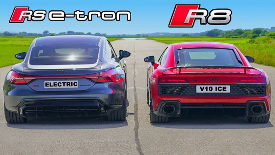 Британский YouTube-канал carwow свёл в дрэг-гонке две Audi: быстрейший электромобиль немецкой марки RS e-tron GT и суперкар R8 Performance. Сильнейшего выявили по результатам заездов с места на четверть мили, нескольких стартов с хода с 50 миль в час (80 километров в час) на дистанции в полмили, а финальным тестом была оценка эффективности тормозных механизмов при замедлении со 100 миль в час (161 километр в час) до полной остановки.