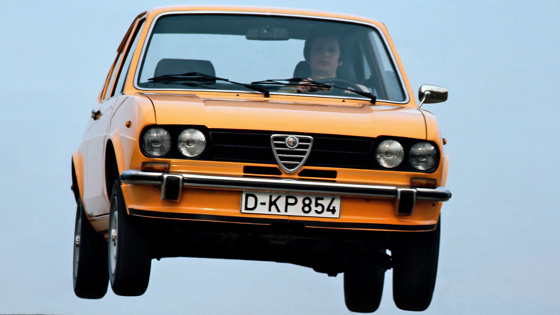 После Симки вышедшая в том же 1973 году Alfa Romeo Alfasud Ti — услада для глаз. Поджарая, с уверенным взглядом четырёх фар, чувственными линиями передних крыльев и пластиковым хвостиком крышки багажника, она вышла из-под руки легендарного Джорджетто Джуджаро.