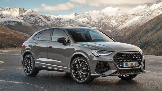 Audi продемонстрировала особенности спецверсии RS Q3 на примере кросс-купе в сером металлике Chronos Grey — ранее в такой цвет «младшие» кроссоверы не красились. Из других отличий — диски с шестью сдвоенными спицами и колёса размерности 225/35 R21, затемнённые матричные фары и полный антихром.