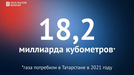 В среднем по 1,5 миллиарда кубометров в месяц.По 11 375 кубометров на одного потребителя газа в Татарстане — на 2021-й у "Газпром трансгаз Казань" насчитывалось 1,6 миллиона абонентов-физлиц.2-е место в России — по потреблению газа в прошлом году Татарстан обогнала Москва. 7,3% от реализованного группой "Газпром" газа на внутреннем рынке в 2021 году — объемы продаж составили 247,2 млрд кубометров.233 суточных рекорда потребления газа Татарстана — 29 декабря 2021-го потребителям в республике поставили 78 миллионов кубометров газа. В 38 раз меньше потребленного Татарстаном за 66 лет — в апреле 2021 года ООО "Газпром трансгаз Казань" зафиксировало суммарный показатель потребления газа республикой в объеме 700 млрд кубометров.В 31 раз меньше потребленного газа Европой в прошлом году — его объем оценили в 571,1 млрд кубометров. На 3,5 миллиарда кубометров больше, чем за 2014 год — Татарстан потребил 14,7 миллиарда кубических метров.На треть (34%) больше, чем в 1999 году — объем потребления Татарстаном природного газа оценивался в 13,57 миллиарда кубометров.Треть совокупной мощности экспортного газопровода из России в Европу "Северный поток" — она оценивается в 55 млрд кубометров газа в год.Чуть больше четверти от потребленного Европой за второй квартал 2022 года — она сократила потребление на 13,9 млрд кубометров, до 71 миллиарда.На 200 миллионов кубометров больше, чем за 2018 год — объем потребленного в Татарстане газа составлял 18 млрд кубических метра, что было 3-м местом в России. Больше половины — 55% — от прогнозируемого потребления газа к 2030 году — через восемь лет объемы могут вырасти до 33 миллиардов кубометров.