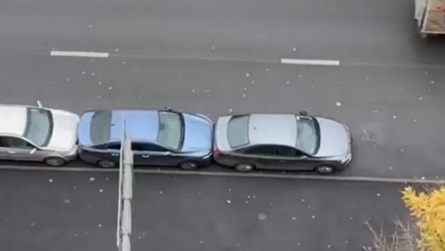 Массовая авария с участием семи припаркованных у тротуара машин попала на видео, опубликованное в Telegram-канале «Новости Москвы».