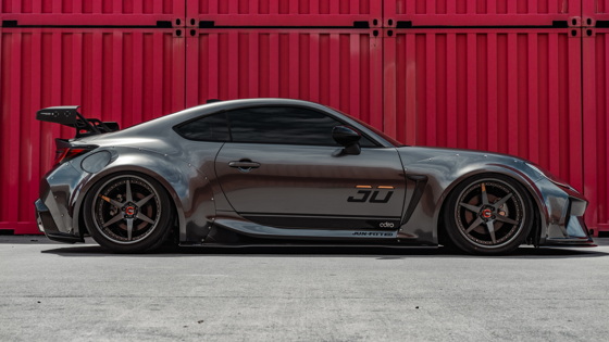 Американская тюнинговая компания Aerodynamic Development Race Optimization (ADRO) объявила о наборе компонентов для стайлинга Toyota GR 86.Вместе они радикально переосмысливают дизайн японского спортивного автомобиля. Нос выглядит спортивнее и ниже, воздухозаборники в переднем бампере стали крупнее, а передний сплиттер всего в нескольких миллиметрах от царапания асфальта. Арки в 2,5 раза шире, чем у стока, а сзади есть высокое карбоновое крыло, дополненное более объемным задним диффузором. Компания предупреждает, что колеса и комплект для занижения подвески, показанные на фотографиях, не включены. Разработанный в Калифорнии и произведенный в Южной Корее, комплект добавляет автомобилю 90 кг прижимной силы, одновременно увеличивая его вес на целых 113 кг. После его официальной презентации на выставке SEMA в следующем месяце вы сможете купить его всего за 4750 долларов.