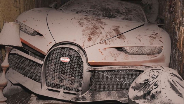 Подробнее: Видеть Bugatti Chiron Pur Sport с разбитым передним бампером, забытым среди кучи хлама, включая старую лампу, поддон и мешки, довольно удручает.