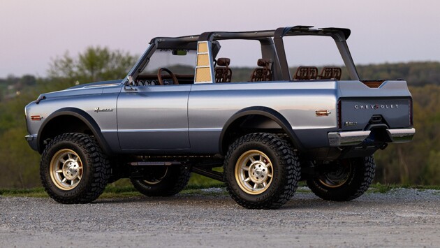Ringbrothers представила 50-летний Chevrolet Blazer, над которым они работали 8500 часов. Внедорожник получил новую подвеску, нестандартную кабину и в несколько раз большую мощность. Большинство моделей Blazer 1970-х годов оснащались двигателями мощностью 110 л.с., а в топовых моделях использовался 5,7-литровый V8 мощностью 175 л.с. Замена последнего на современный 6,8-литровый V8, настроенный Wegner Motorsports, повысила мощность до колоссальных 1217 л.с. Благодаря системе Bowler AWD, мостам Dana, а также амортизаторам и рычагам Fox эта конструкция представляет собой грозную машину для бездорожья. Его 18-дюймовые колеса обуты в грязевые шины Cooper Discoverer и скрывают за спицами шестипоршневые суппорты Baer. Внешний вид дополняют расклешенные крылья и вентилируемый капот. В интерьере используются новые сиденья, состоящие из переплетенных кожаных полос, обернутых вокруг металлического каркаса. Крыши нет, но силовые раскосы есть.