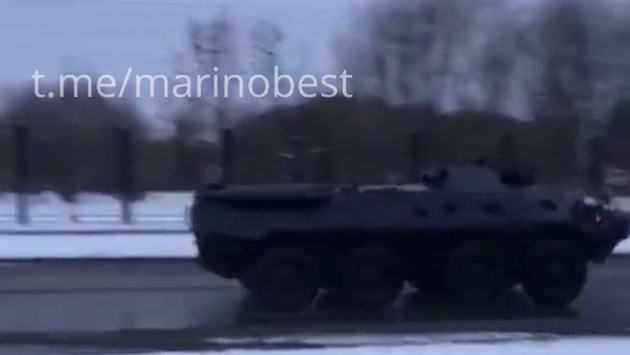 На дороге в Москве заметили бронетранспортер (БТР). Боевая машина попала на видео, выложенное в Telegram-канале «Марьино/ЮВАО» сообщества «М125».