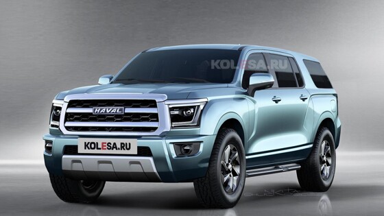 Первое, что бросается в глаза – внушительные габариты будущей новинки. Она получит очень большую колёсную базу и практически вертикальный разъём задних дверей, благодаря чему пропорции вызывают ассоциации с такими моделями, как Chevrolet Suburban и Cadillac Escalade ESV. Что же касается дизайна внедорожника, то он во многом схож с большим пикапом Great Wall King Kong Poer, который должен послужить технической базой для новинки. Спереди появится массивная решётка радиатора с парой горизонтальных перекладин, а над колёсными арками расположатся характерные выштамповки, как у пикапа. Сами же колёсные арки изменятся и станут круглыми, а не оквадраченными. Задняя часть получит крупные вертикальные фонари, объединённые в верхней части перемычкой. Этот элемент вкупе с формой ниши номерного знака может вызвать ассоциации с другой хорошо известной в России моделью компании – кроссовером Dargo.