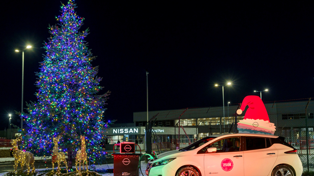 На заводе Nissan в Сандерленде, Великобритания, нашли необычное применение электрическому Leaf: электрокар выступил внешним источником питания для 10-метровой рождественской елки. Таким способом Nissan отметила важную веху в истории Leaf – с конвейера британского завода сошел 250-тысячный экземпляр модели, – а заодно напомнила, что именно этот электромобиль одним из первых в отрасли получил функцию двунаправленной передачи энергии.