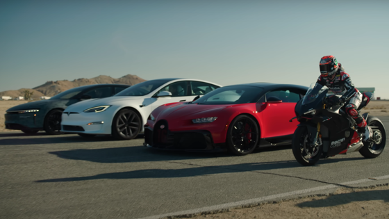 Тема гонок по прямой с участием электромобилей кажется практически неисчерпаемым инфоповодом для видеоблогеров, что подтверждает очередной ролик от авторов YouTube-канала Hagerty. Но на сей раз блогеры не стали мелочиться и собрали соревнование с участием двух мощнейших электромобилей мира — Lucid Air Sapphire и Tesla Model S Plaid — оппонентом для которых стал один из самых мощных гиперкаров с традиционным двигателем внутреннего сгорания, Bugatti Chiron Pur Sport. Ну а на десерт их свели с супербайком Ducati Panigale V4 SP2.