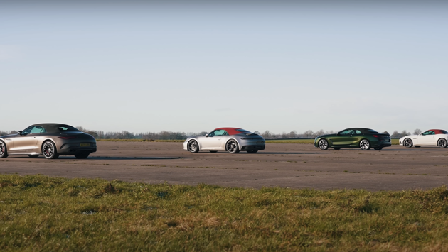 Авторы популярного YouTube-канала carwow устроили очередное состязание по дрэг-рейсингу, в котором сошлись не самые подходящие для конца декабря автомобили — в гонке встретились премиальные и очень мощные кабриолеты с мягким складным верхом. Горячей новинкой оказался Mercedes-AMG SL 55, в соперники которому выбрали не такие свежие с точки зрения дебюта, но актуальные Porsche 911 Carrera GTS Cabriolet, BMW M850i Convertible и Jaguar F-Type R Convertible.