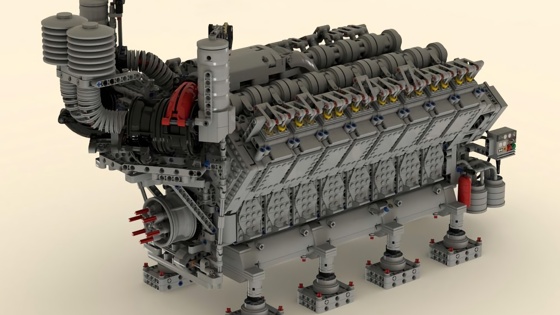 Энтузиаст Штефан Вайнерт сконструировал из Lego работающий судовой дизельный двигатель и показал реалистичный процесс погрузки агрегата на 40-колесный тягач, который тоже был сделан из Lego. Также он построил генератор с возможностью регулировки мощности, причем для всех своих проектов использовал оригинальные детали конструктора.