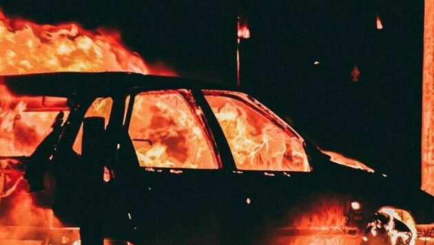 На кадрах видно два легковых автомобиля, охваченных огнем. Судя по видеоролику, одна из машин могла пострадать сильнее — огонь охватил ее почти полностью, в то время как на второй автомобиль он перешел частично, распространившись по правой стороне.