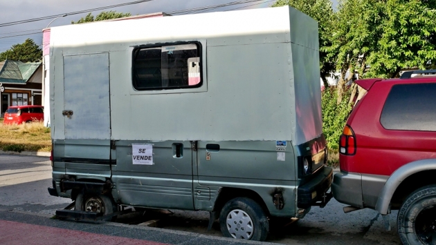 Этот прицеп, сфотографированный в Чили, относится ко второй категории. Он представляет собой японский минивэн кей-класса Suzuki Carry, превращённый в самодельный дом на колёсах.
