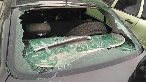 «Обиженный жизнью чудак исполнил начто способен (…) разбил заднее стекло, помял капот. Был одет вкуртку сосветоотражающими вставками (спецовку). Предположительно, шел состороны рынка сферы в9-й микрорайон иушел всторону шестого микрорайона мимо фонтанов и«Совкомбанка»,— рассказал автор поста.