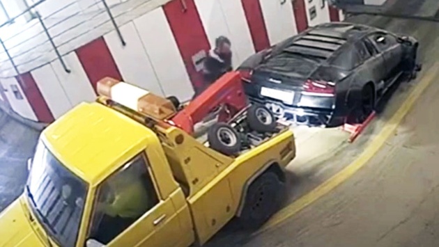 Спорткар Lamborghini Murcielago стоимостью более 12 млн рублей угнали с охраняемой парковки, что называется, без шума и пыли. Угонщик показал охраннику стоянки поддельные документы на машину, погрузил ее на эвакуатор и был таков.
