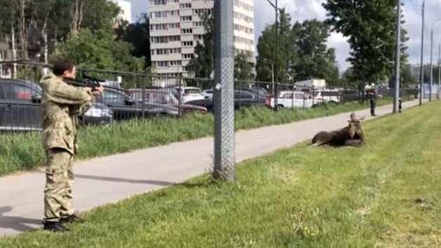 В Санкт-Петербурге спасатели поймали лося, который бегал по городу и попал под машину