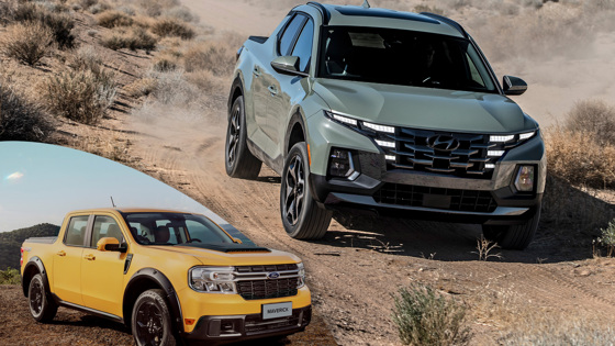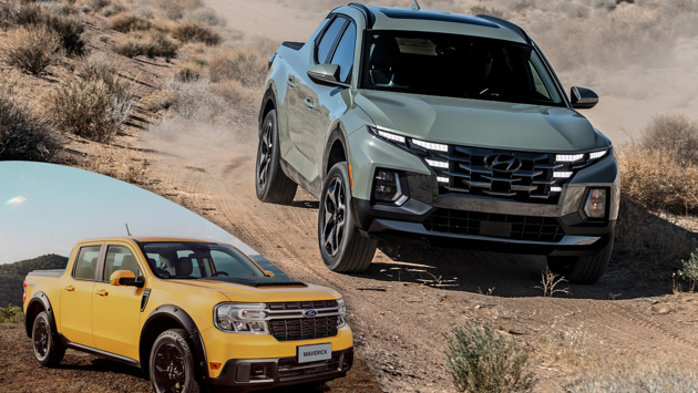 Hyundai Santa Cruz SEL 2.5 GDI Ford Maverick 2.5 FHEV XLT Тип двигателя бензиновый, L4 бензиновый, L4 + электро Рабочий объем, см³ 2497 2491 Макс. мощность, л.с./об/мин 194/6100 164/5600 Макс. момент, Нм/об/мин 245/4000 210/4000 Пиковая мощность электромотора, кВт --- 94 Пиковый момент электромотора, Нм --- 235 Суммарная мощность гибридной силовой установки, л.с. --- 194 Тип привода полный передний Коробка передач автоматическая, 8-ступенчатая бесступенчатая гибридная Передняя подвеска пружинная, McPherson пружинная, McPherson Задняя подвеска пружинная, многорычажная пружинная, скручивающаяся балка Габариты (ДхШхВ), мм 4971х1905х1694 5072х1844х1745 Колесная база, мм 3005 3076 Дорожный просвет, мм 218 211 Длина грузовой платформы, мм 1323 1382 Снаряженная масса, кг 1759 1667 Объем грузового отсека, л 765 943 Разгон 0–97 км/ч, с 9,1 7,6 Макс. скорость, км/ч 180* 180* Расход топлива (комб., EPA), л/100 км 10,2 6,4 Объем топливного бака, л 78 52 Цена, USD от 28 190 от 24 855