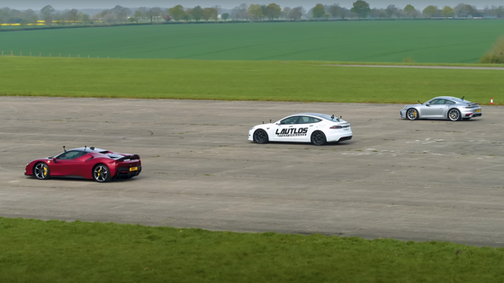 Канал Carwow уже неоднократно сводил в гонке по прямой эксклюзивные суперкары самых разных моделей и модификаций, но в этот раз устроил сражение таких автомобилей, которые превратили их дрэг-гонку в битву концепций силовых установок. Честь классических двигателей внутреннего сгорания выпало отстаивать Porsche 911 Turbo S, за электромобили выступила Tesla Model S Plaid, а гибриды представил суперкар Ferrari SF90 Stradale.