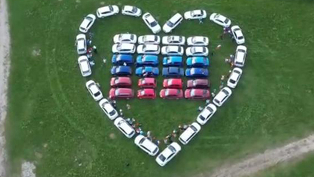 Для этого владельцы машин белого, синего и красного цветов выстроили на поле рядом с Кирилло-Белозерским монастырем российский флаг и вокруг него сердце.
