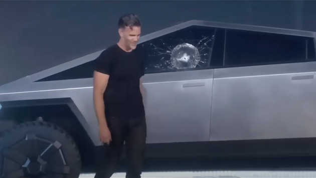 Во время презентации Илон Маск решил продемонстрировать прочность Cybertruck, заявив, что его стекла устойчивы к ударам. Он попросил своего главного дизайнера Францу фон Хольцхаузену бросить металлический шар в окно машины. Однако, вместо того чтобы отразить удар, как это было запланировано, стекло сильно разбилось.