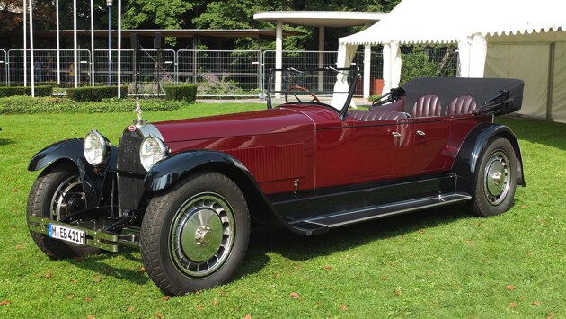 Это автомобиль класса люкс, выпускавшийся с 1927 до 1933 года. Всего было выпущено шесть таких машин — по одной в год. Bugatti не были бы собой, если бы не запихнули туда самый огромный в мире двигатель, и они сделали это. Просто представьте себе движок объемом 12,7 литра! Это монстр, который, скорее всего, может грузовые корабли толкать. Мощность составляла невероятные 300 лошадиных сил.