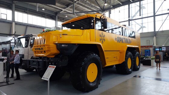 На международной промышленной выставке «ИННОПРОМ-2023», которая проходила 10-11 июля в Екатеринбурге, на стенде Миасского автозавода «Урал» была представлена новейшая автомобильная разработка ЮУрГУ «Арктика» для передвижения в условиях Крайнего Севера. Арктический автобус является совместным проектом Южно-Уральского государственного университета, автозавода «Урал» и МГТУ имени Баумана. Базой для создания автобуса выступил автозавод «Урал», конструкторской документацией, подбором материалов, изготовлением элементов корпуса занимался ЮУрГУ. Новое транспортное средство предназначено для перевозки пассажиров по временным дорогам («зимникам») и сложным участкам при температурах до минус 50°С. Благодаря применению широкопрофильных шин низкого давления автобус обеспечивает низкое удельное давление на опорную поверхность для мягкого и плавного движения и высокой проходимости по снегу, слабонесущим грунтам, так как в условиях Крайнего Севера важно не повреждать растительный слой, который стирается от колесной техники и восстанавливается около трех десятилетий. Автобус может вместить в себя до 22 человек, он оснащен всеми удобствами, включая систему вентиляции, обогрева и систему распределения воздушных потоков. Все места оборудованы usb-розетками и встроенными беспроводными зарядками. На транспортном средстве установлены модернизированные агрегаты, которые в 2022 году прошли испытания на первом прототипе арктического автобуса в Якутии. Под капотом расположен рядный шестицилиндровый двигатель с воспламенением от сжатия мощностью 310 лошадиных сил, девятиступенчатая коробка передач с демультипликатором. Реклама www.susu.ru/ru