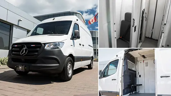 Канадская компания Inkas Armored, которая специализируется на создании броневиков и бронировании стандартных машин, представила свой новый проект — за основу был взят электрический фургон Mercedes-Benz eSprinter, который силами специалистов ателье был превращён, во-первых, в бронемашину, а во-вторых, в специальный автомобиль для транспортировки заключённых. Фургон оснащён запирающей системой, которая исключает возможность побега или несанкционированного доступа.