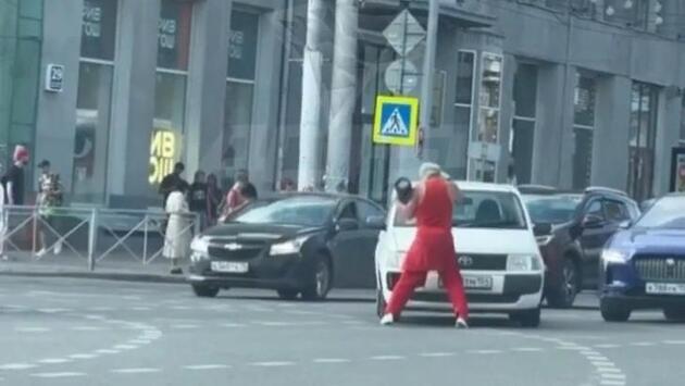 Знаменитый танцор с Красного проспекта напугал новосибирских автомобилистов. Он переместился с островка безопасности на проезжую часть и буквально прыгает под колеса проезжающих мимо машин.