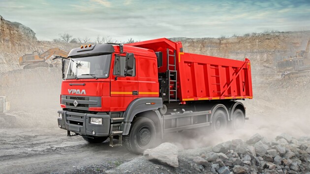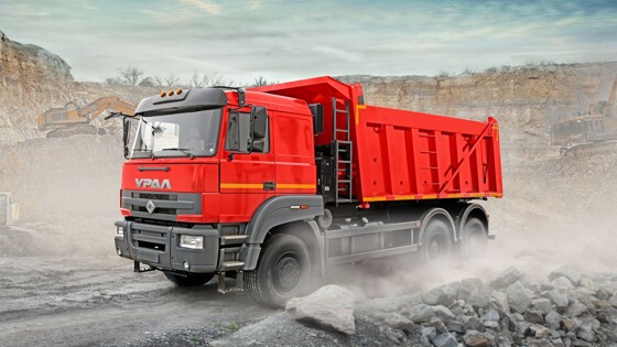 Еще один популярный российский самосвал — Урал-С35510. Этот бескапотник нового поколения с итальянской кабиной и китайскими мостами, китайской же механической коробкой передач Fast Gear FG 12JS 220TA с 12 передачами и тросовым приводом. Из исконно российского здесь дизель ЯМЗ-653, рядная «шестёрка» объёмом 11 л и мощностью 420 л.с. И это сочетание весьма удачно с точки зрения тяговых возможностей, а заявленный ресурс мотора до капитального ремонта - миллион километров.