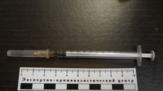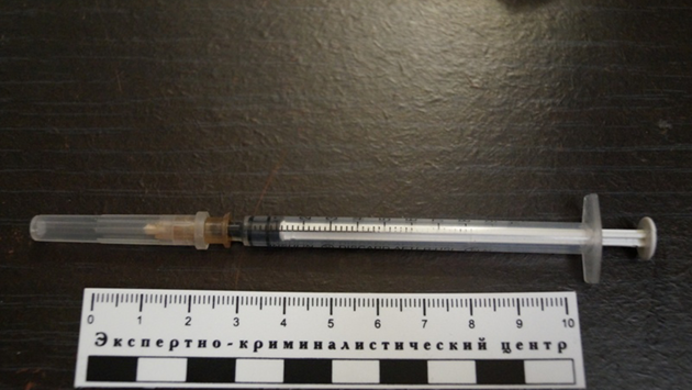 Взяли анализы — шприц мог быть заражен. Экспертиза показала, что неизвестная жидкость бежевого цвета, которая в нем находилась, — это наркотическое вещество, а именно мефедрон. Отпечатков пальцев на игле не обнаружено.
