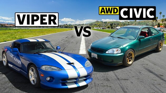 Американская команда Hoonigan, которая помимо подготовки автомобилей к гонкам ведёт и собственный блог, представила новый эпизод своего проекта This vs. That. В новой гонке по прямой блогеры свели два купе — знаменитый американский спорткар Dodge Viper с гигантским 8,0-литровым двигателем и относительно скромную Honda Civic, которая, впрочем, оказалась не так проста, как кажется. Дело в том, что её 2,4-литровый турбомотор оказался мощнее американского.